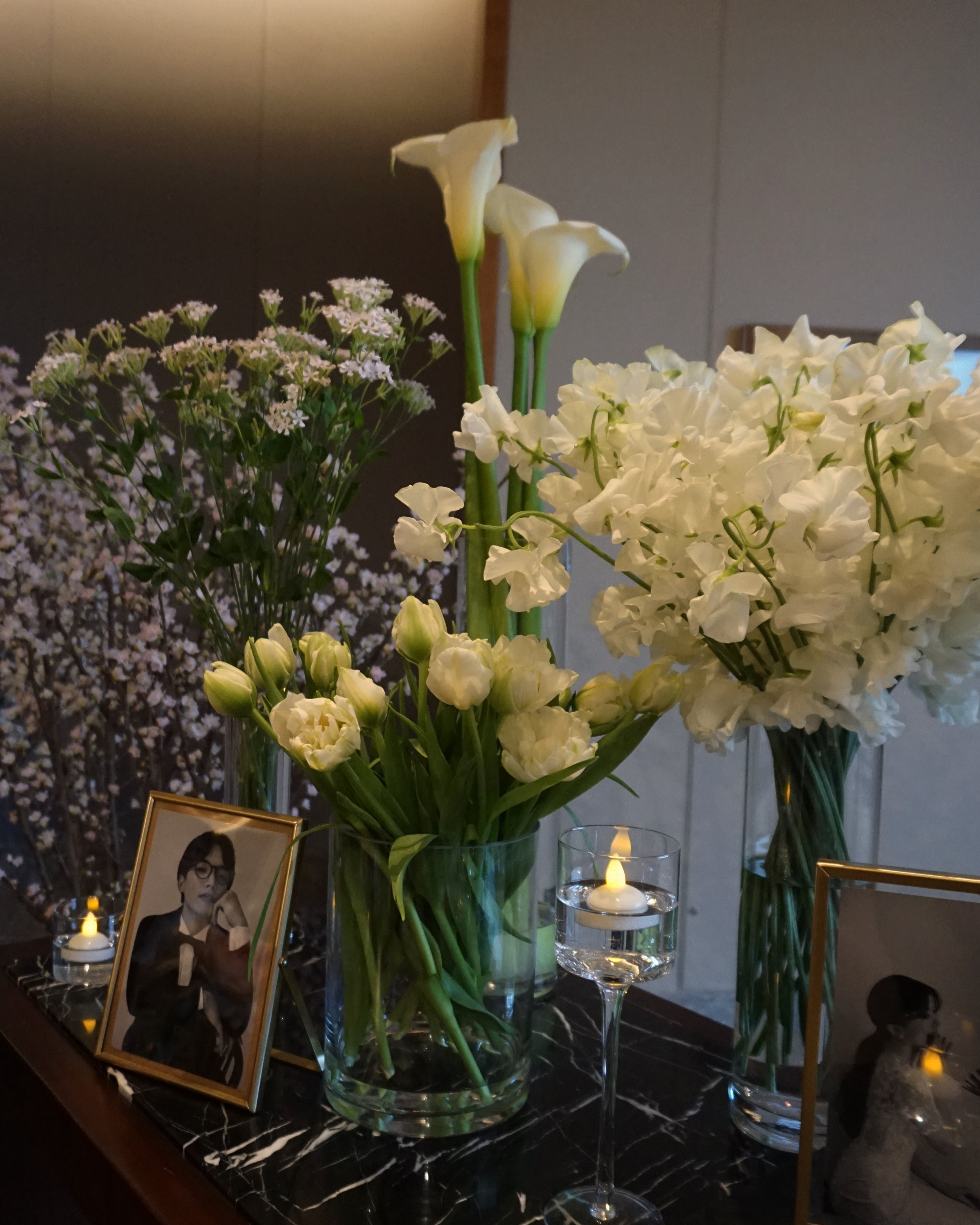 大切なお祝いの日に、特別な想いを込めてテーブルをお花いっぱいに飾る。そんな非日常の装飾をご自宅はもちろん、ホテルなどの会場にもご配送しています。