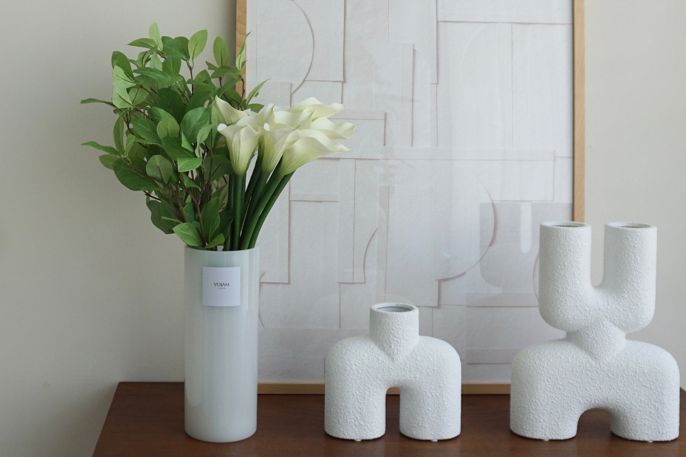 お手持ちの花瓶でも十分美しく飾っていただけますが、VOJAM厳選の専用花瓶を使えば、届いたそのままの長さで飾ることができます。統一感のある、洗練された空間に仕上げたい方におすすめです。